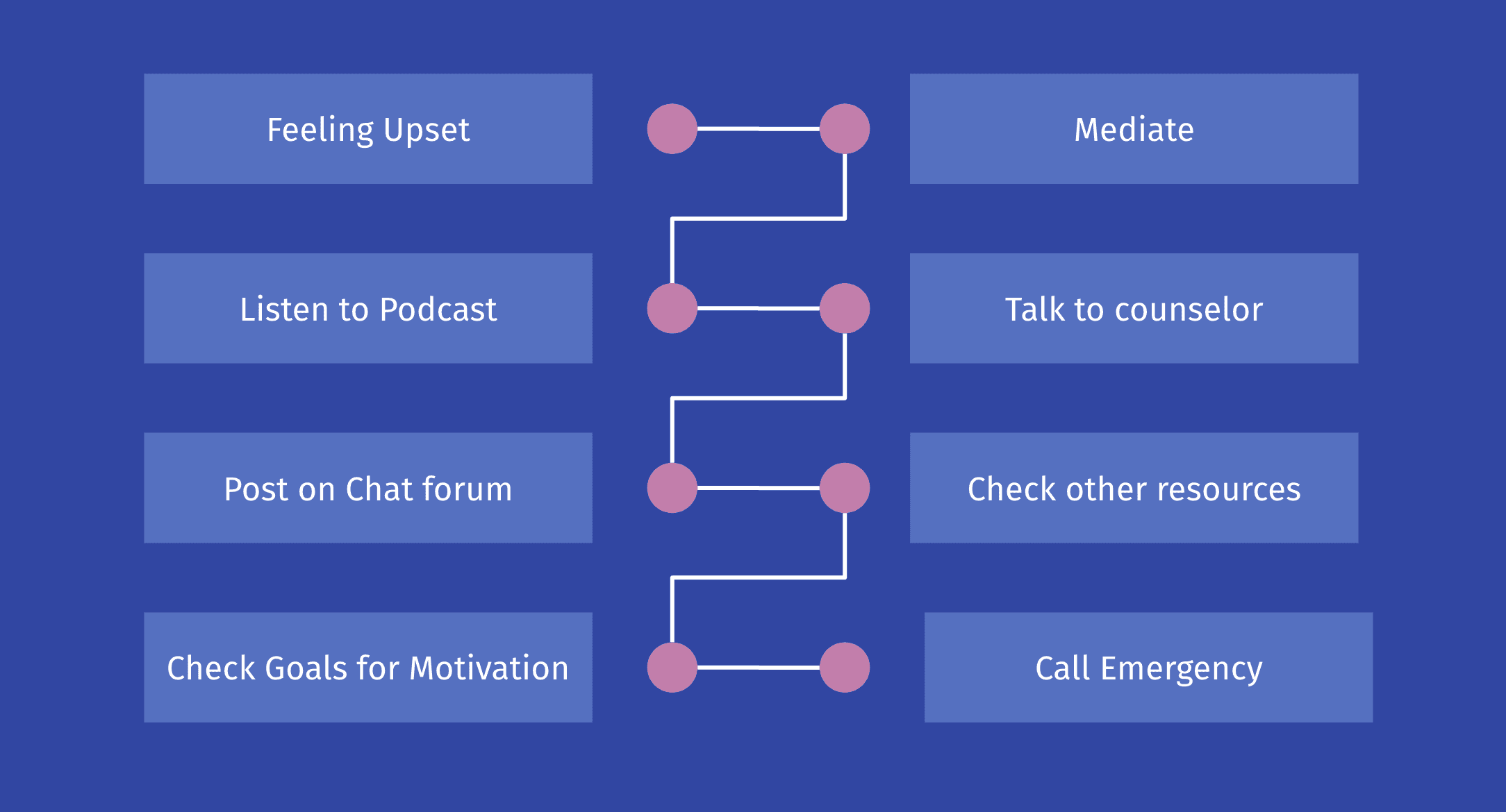I created a possible user journey that someone might take in times when they are feeling distressed. This also helped me identify if the application has an intuitive user interface and whether the navigation is accessible.